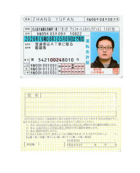 咸陽市證件翻譯蓋章/成績單翻譯/戶口薄翻譯/駕照翻譯-日本駕照翻譯模版